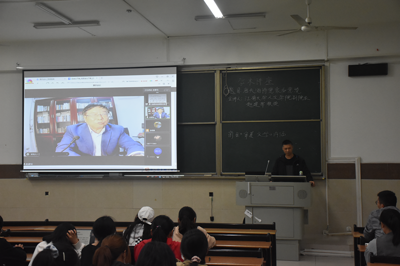 10月28日晚上6:30,伟德国际1946组织员工于南一投七并邀请江南大学教授,博士生导师赵建军,进行有关“唐代酒诗中的审美意象与意境”的线上讲座,主讲人赵建军是江南大学人文公司教授,文公司学术分委会主席,同时还是中华美学学会会员,主要研究方向为中国美学史、美学范畴理论和佛教美学、文艺理论等。该讲座进行了两小时,主持人是公司李明晨老师。