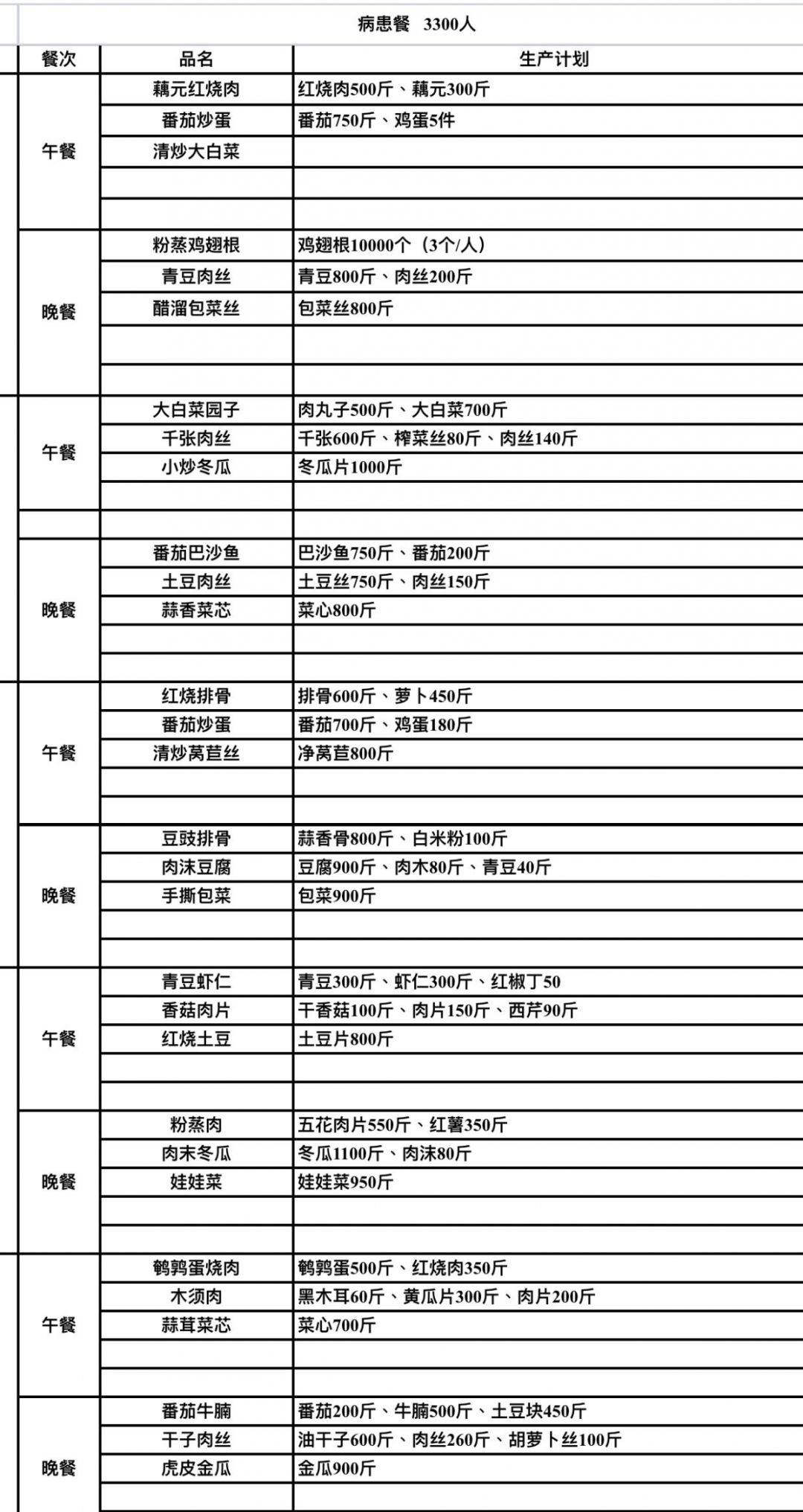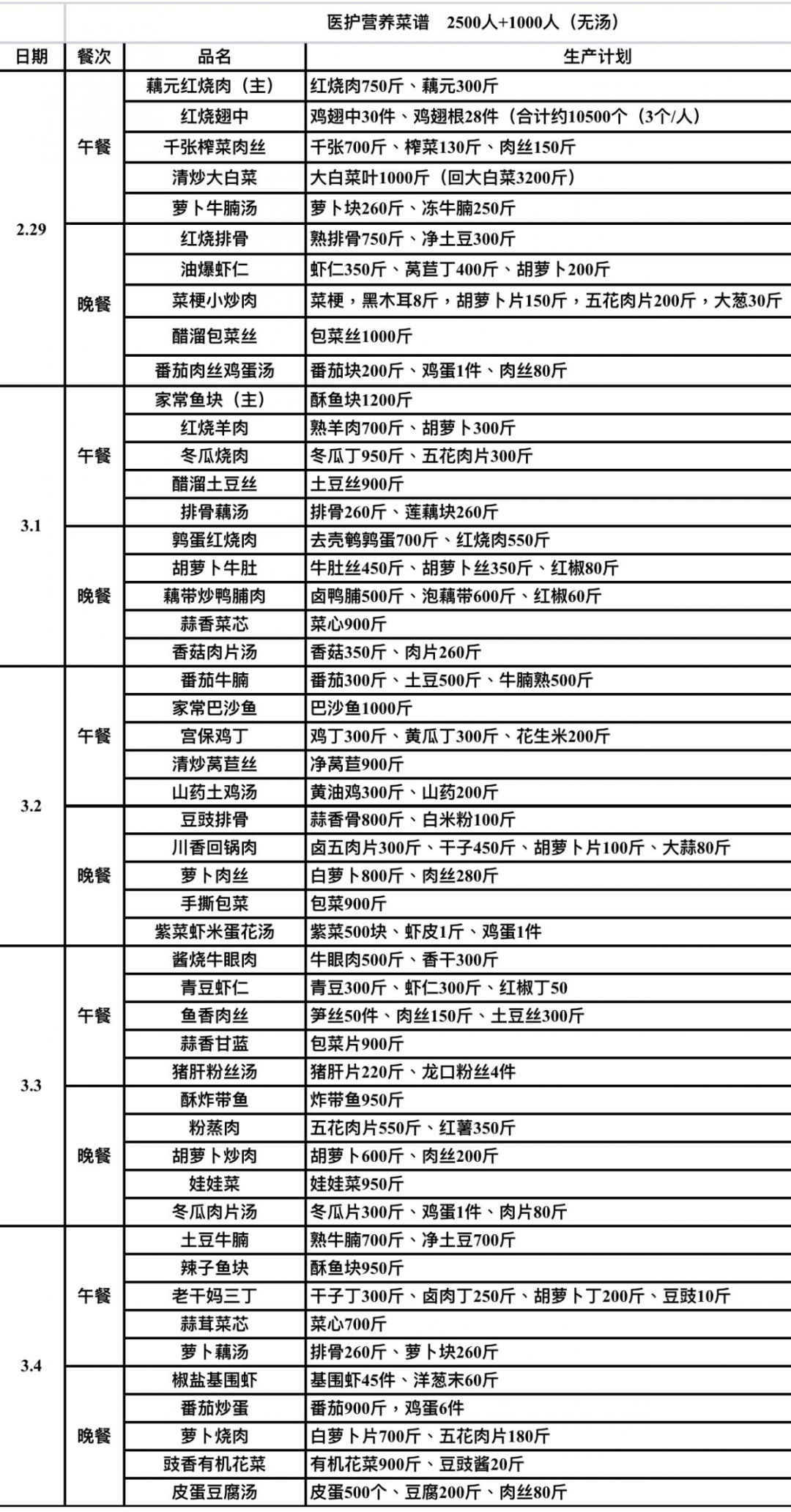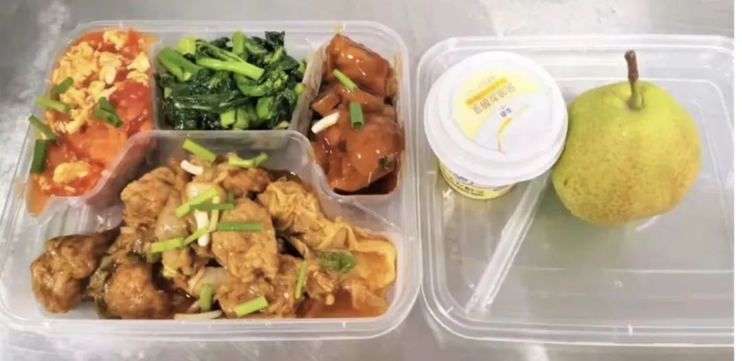 另一份是考虑到医护人员每天工作量大,他们的菜谱以提供能量、补充维生素C为主,菜品包括土豆牛腩、剁椒巴沙鱼、宫爆鸡丁、莴苣丝等。