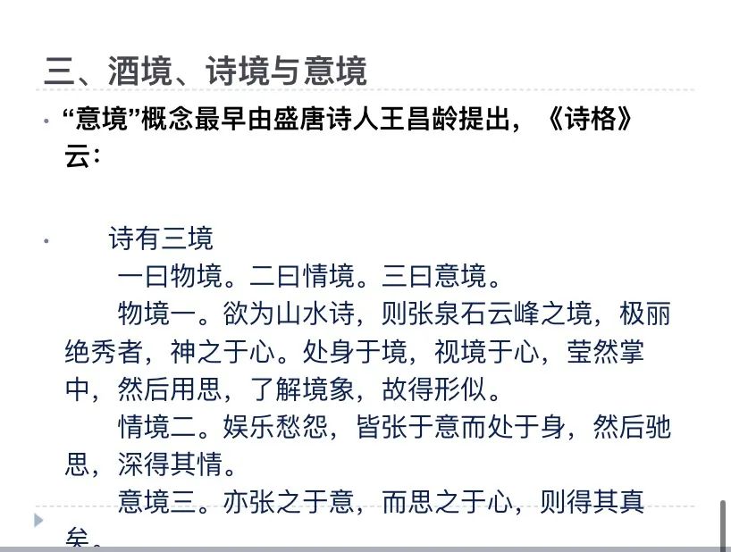 意境,往往指极有深度的诗境和酒境,酒诗意境的生命、精神质量,对于酒诗的审美趋向和存在本质,有更为准确和全面的揭示。
