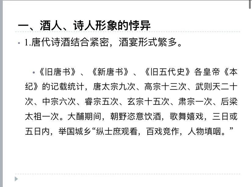 1.唐代诗酒结合紧密,酒宴形式繁多。
