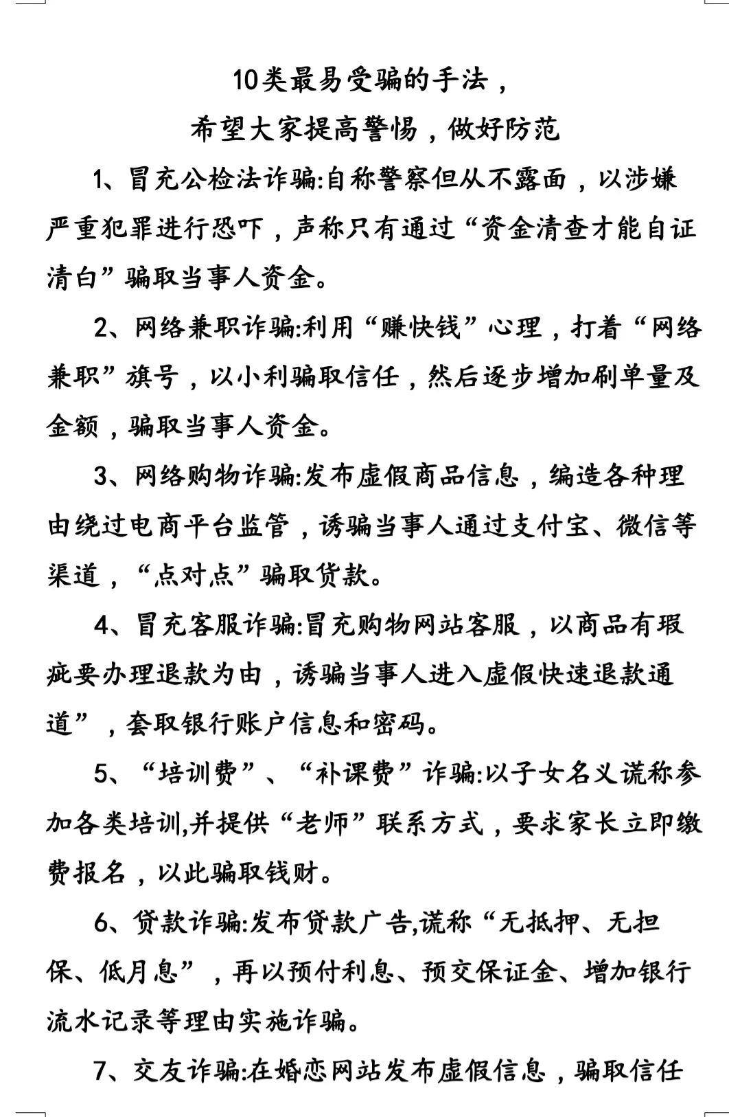 希望大家一定要牢记防诈骗知识