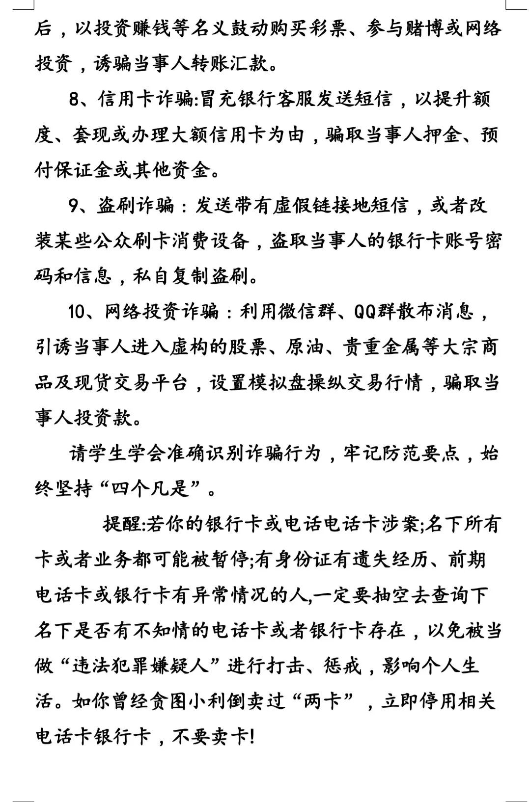 让同学们对电信诈骗