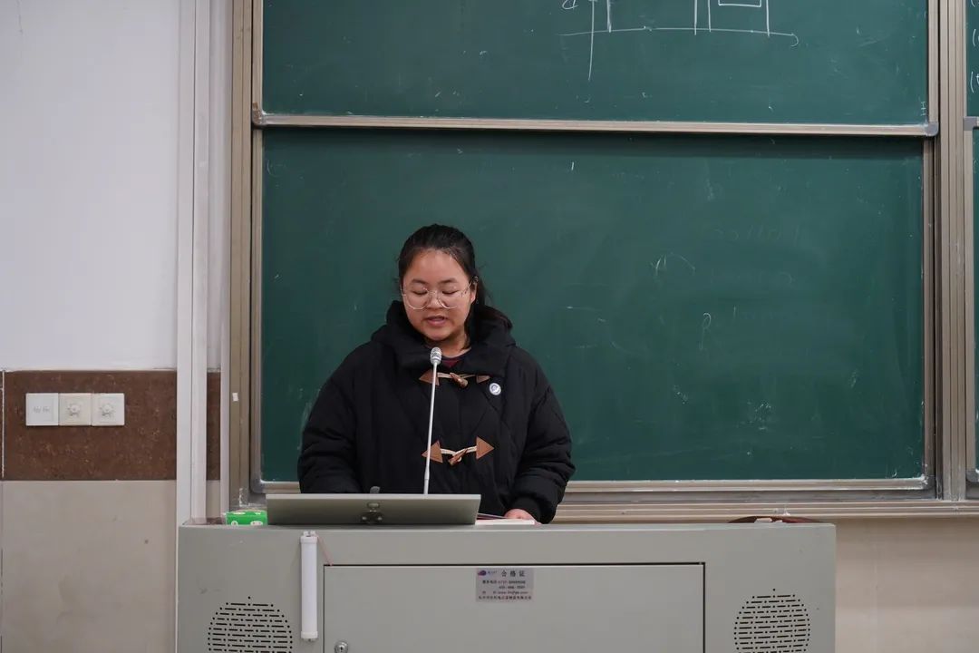 由信息宣传部、学术创新部、人力资源部、生活权益部、文艺体育部,各部门代表上台分享学习心得。