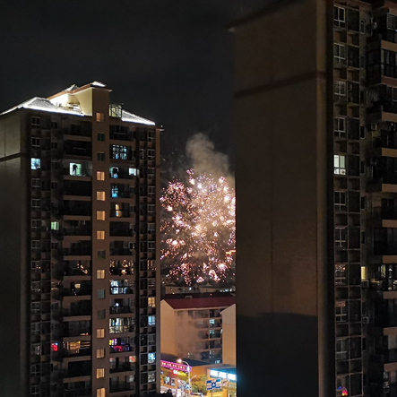 “在开学的第二天,打开阳台的门,便看到了漫天的绚烂烟火。”