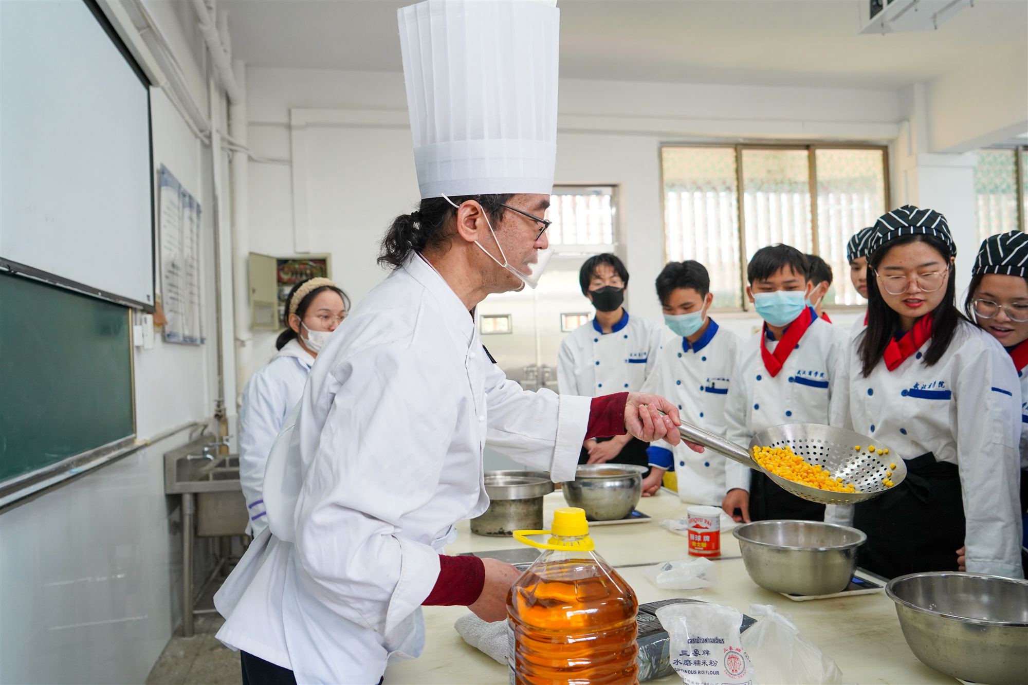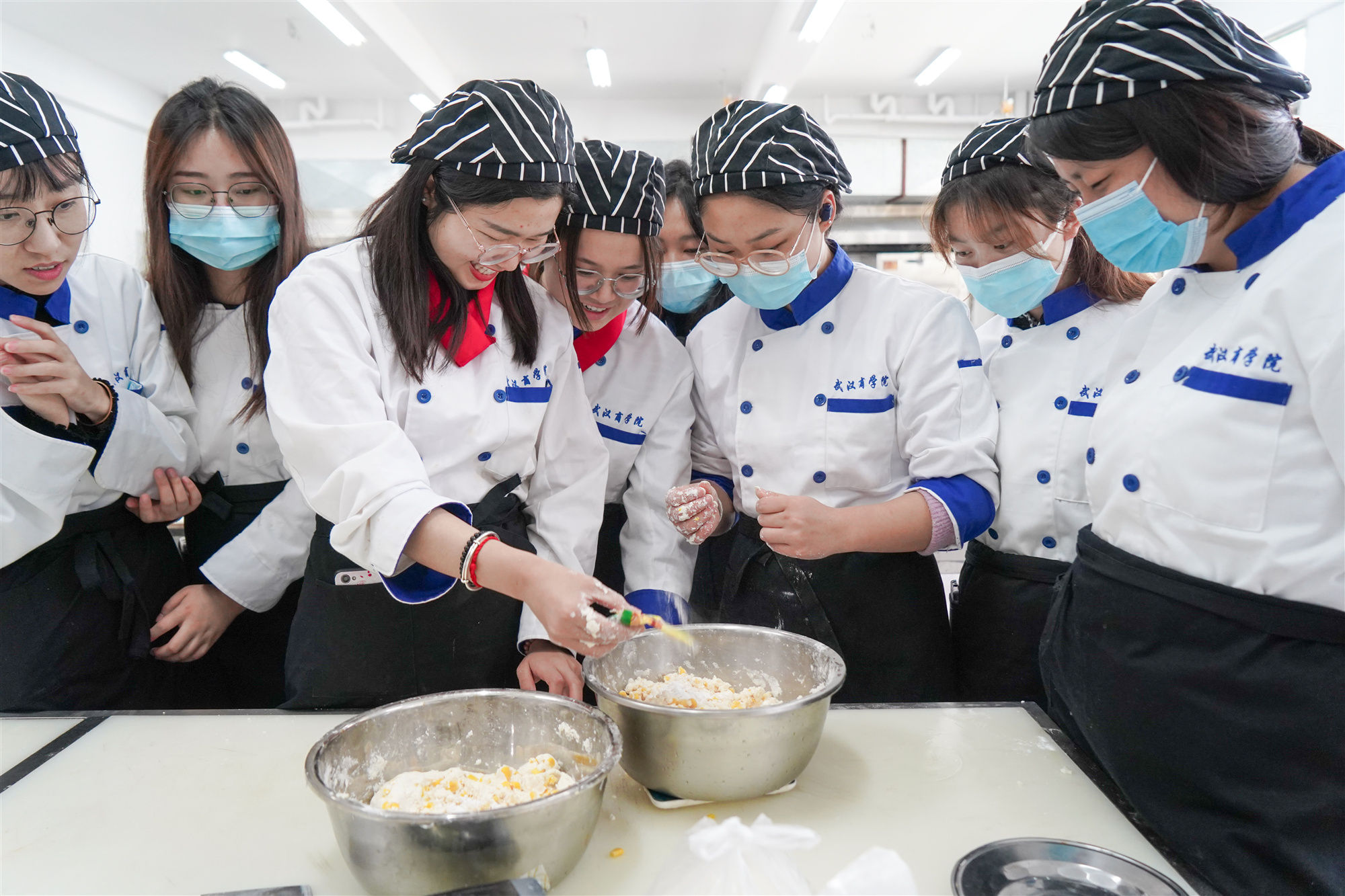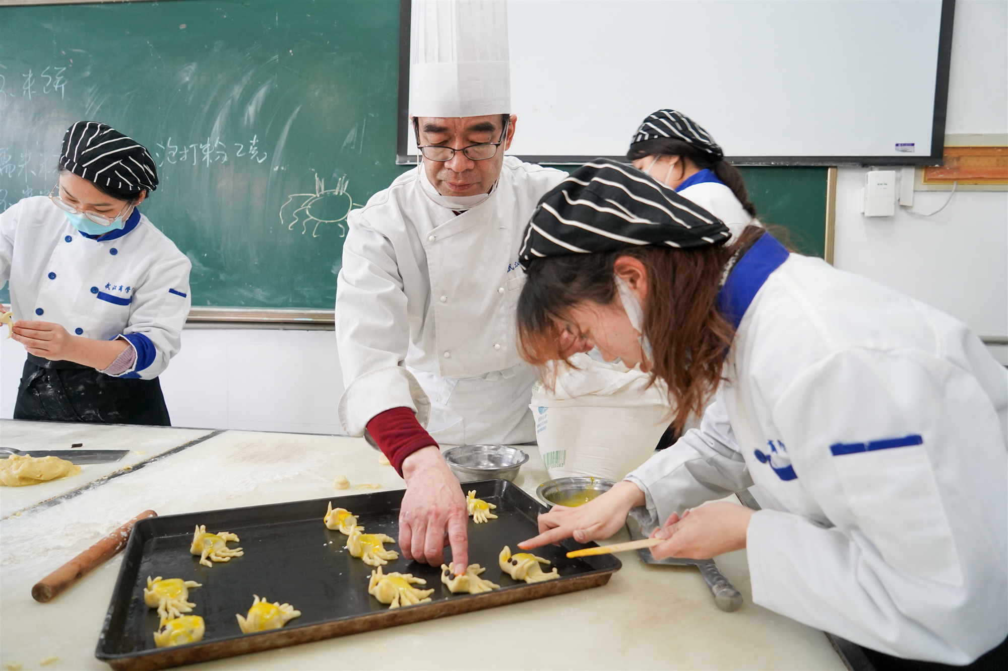为让员工更加了解茶文化,学习茶点制作。4月12日,由公司伟德国际1946主办、美食与营养协会承办的茶点制作活动在南四104实训室举行。活动以“茗香四里,食慰武商”为主题,以中国的传统茶文化为载体,中国烹饪大师方元法现场教学中国传统茶点小吃制作方法。