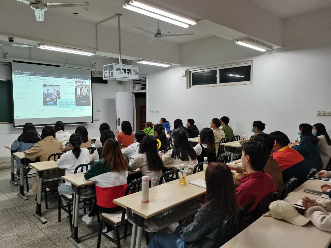 本次交流学习以英语授课为主,内容涉及西欧文明、中法文化差异、法国时尚文化、法餐文化、法国旅行、数字经济等多个领域。首次课程为《法国的时尚奢侈品品牌》,由尼斯大学荣誉讲师、Launchmetrics 集团董事Katherine Knight主讲。整个课堂氛围轻松和谐,师生互动交流活跃。