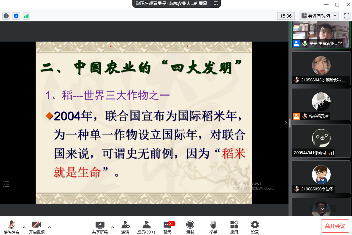 通过此次致远讲坛活动,同学们深刻了解了中国古人生产技术的革新及食用方法的变化,拓宽了视野,也丰富了知识面。