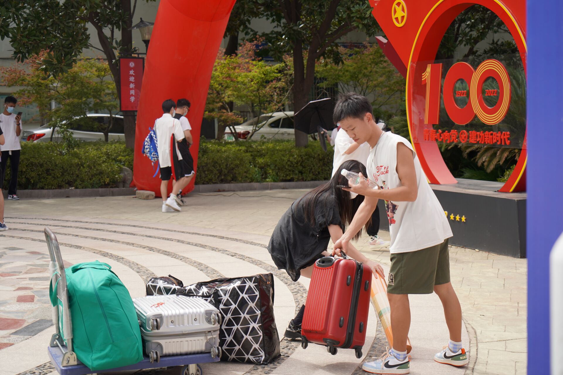 迎新现场高挂着迎新横幅,迎新工作如火如荼,到处都是忙碌的身影。志愿者们不厌其烦地回答着新生、家长提出的各种问题。学长学姐们主动帮忙拎行李到宿舍楼,带着新生去报道点登记、领取军训服,一路有说有笑。志愿者们以优质的服务去迎接新生,所有人对每一个细节都精益求精,在效率和质量两不误的情况下顺利完成任务。