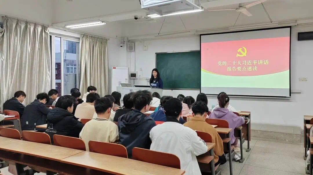 本次活动中,各团支部通过幻灯片,课堂互动等一系列方式生动形象地带同学们理解了党的二十大精神,坚定了同学们永远跟党走的信念,增强了同学们奋进新征程的信心。活动总结到:作为新时代的中国青年,我们应该将党的二十大精神与个人相结合,朝着目标不断前进,努力谱写青春最美华章。