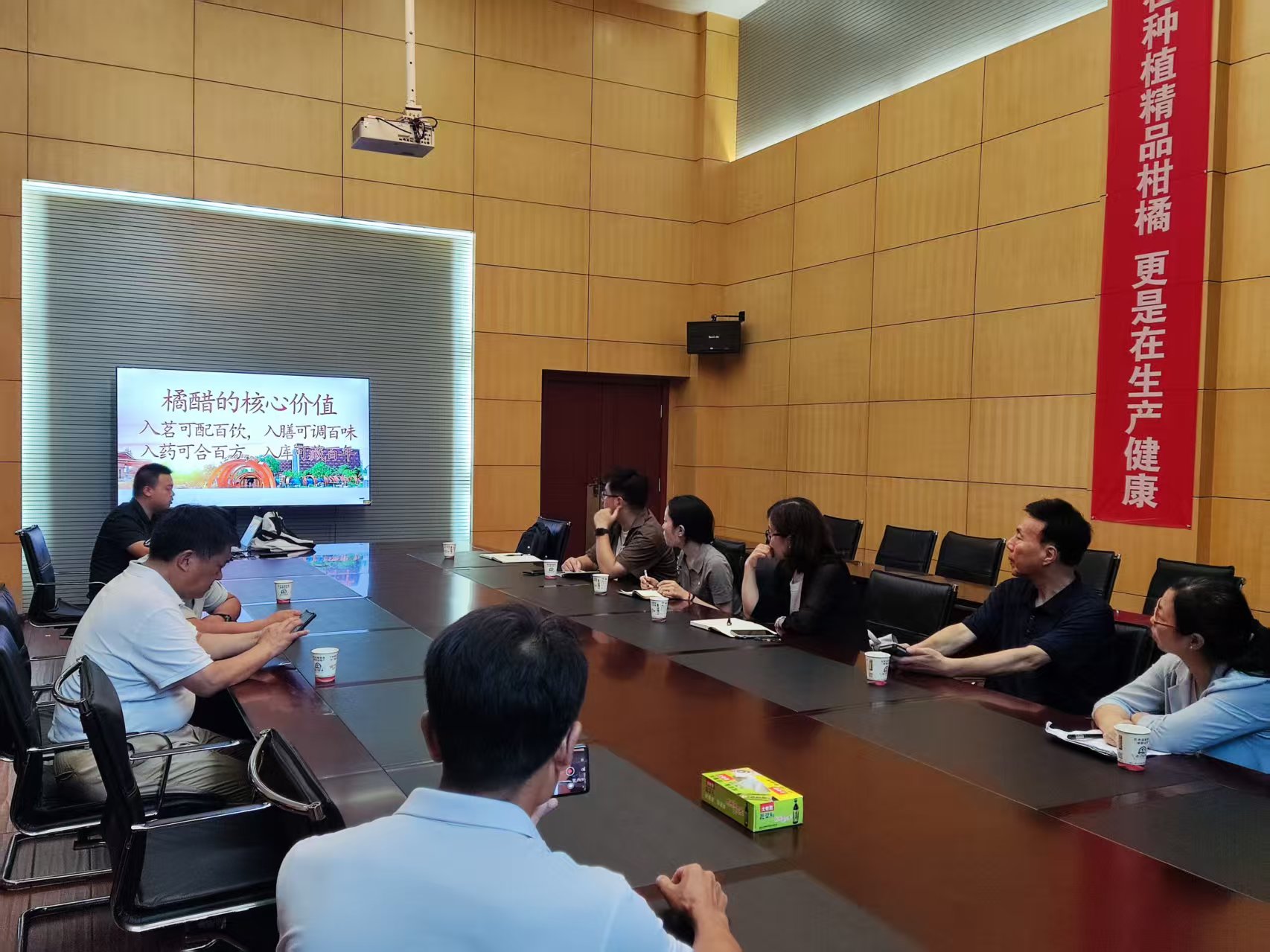 湖北土老憨生态农业集团位于宜昌市宜都市,拥有世界最大的果醋酿造基地,该基地坐落于北纬30°“世界黄金维度”区域,为微生物的发酵提供了得天独厚的条件。该公司橘醋产品以宜都蜜桔为原料,引进意大利Blasamic Vinegar的酿造工艺,利用橡木桶进行熟成,目前已成功开发出 100 多个橘醋类产品,在大健康产业领域展现出蓬勃的发展态势。集团旗下橘醋产品采用全生物发酵方式,不添加一滴水,原料全部来源于橘子,其柑橘类黄酮物质含量超过400 mg/L,远高于市面上其他醋类产品,这一特色引起了调研团队的高度关注。