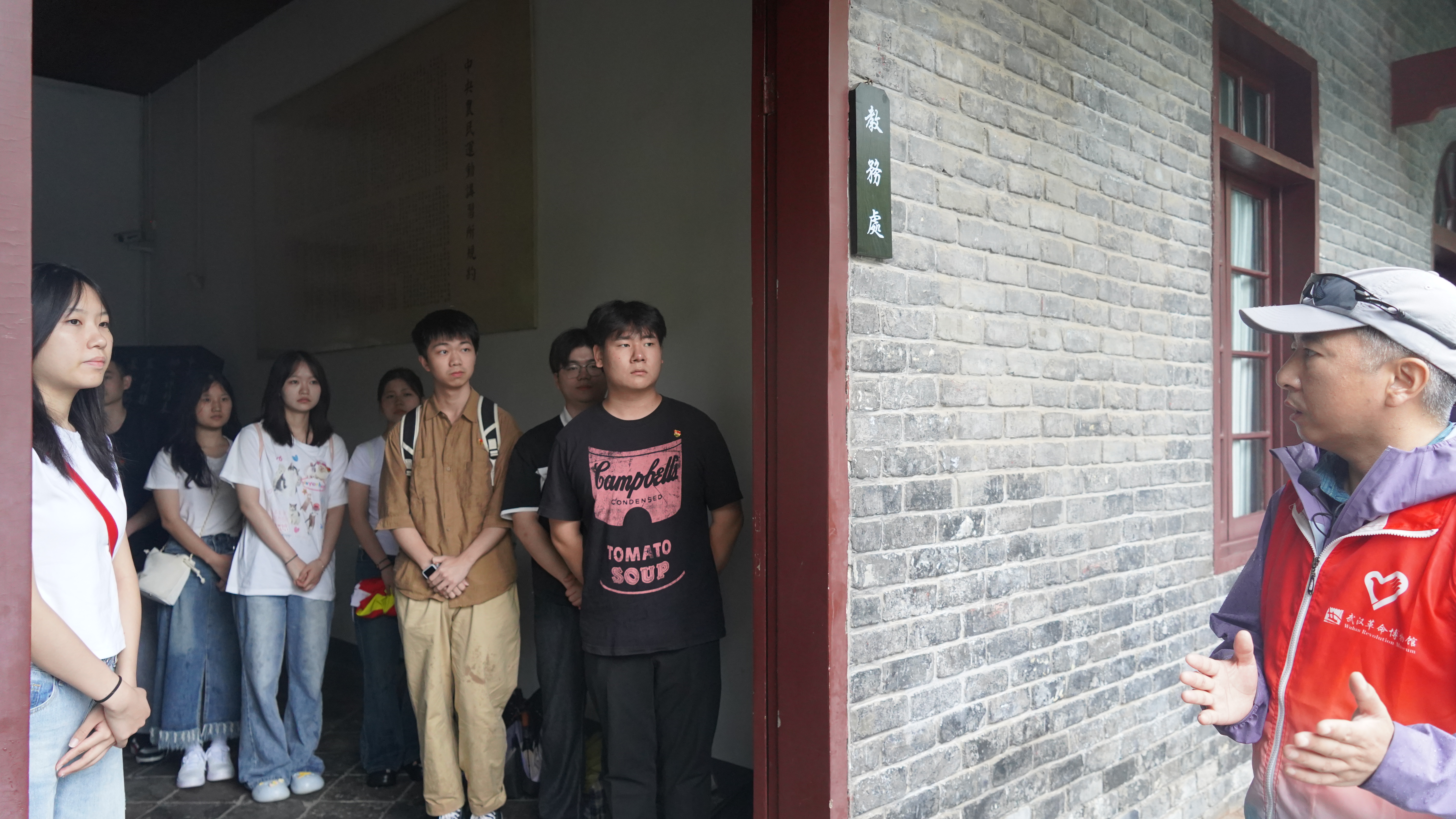 大雨倾盆,员工们的热情丝毫不减。踏入武昌农民运动讲习所旧址,青石板路与雕花木窗仿佛将时光拉回1927年。毛泽东同志曾在此主讲《湖南农民运动考察报告》,点燃全国农运火种。党员们围站在“讲习所课堂复原区”,凝视着斑驳的黑板、陈旧的藤椅,听着讲解员的介绍,22级烹饪营养与教育员工党员吴思俊感慨:“当年教员站在这里授课,台下坐着的是来自全国各地的革命火种传播者。如今我们站在这里,何尝不是在听课呢?”