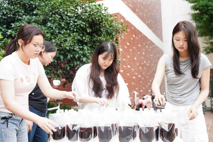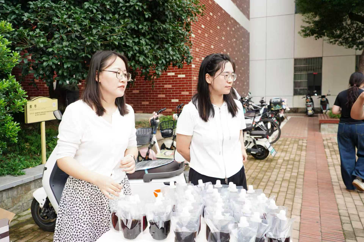党委副书记刘玲和辅导员赵斌分发酸梅汤