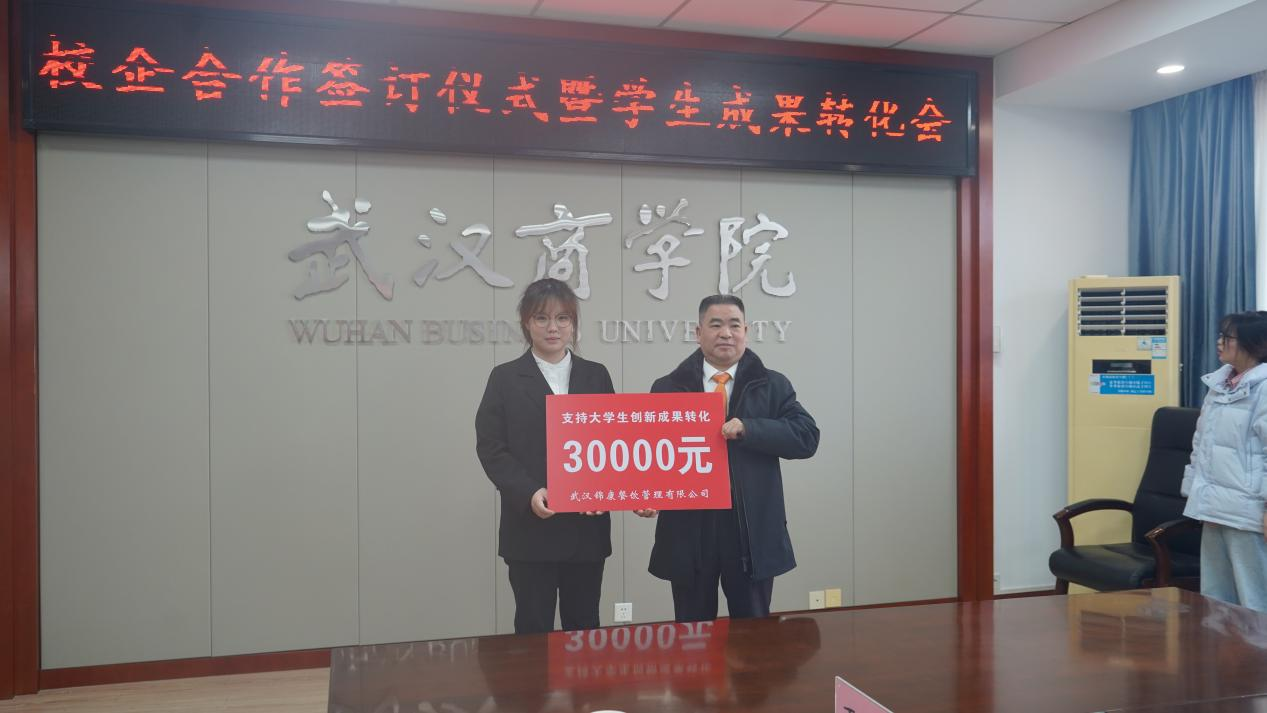 本网讯(通讯员/摄影 何雨竹)12月31日上午,伟德国际1946与武汉锦康餐饮管理有限公司在行政楼502会议室举行校企合作签约仪式暨员工成果转化会。此次活动标志着双方在资源共享、优势互补方面进一步加深合作。
